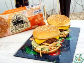 Запоминающийся вкус этим бургерам придаёт толстая сочная котлета, пожаренная на гриле, и вкуснейшая булочка от ТМ Bagerstat. В состав котлеты, помимо фарша, входит пюре из зелёного лука и дижонская горчица. …