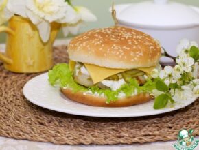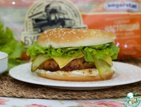 Предлагаю приготовить гамбургер с сочной котлетой, приготовленной из филе птицы с грибами, сыром и карамелизированым луком, дополним вкус белым соусом и вкусной булочкой для бургера с кунжутом от Bagerstat. Это …