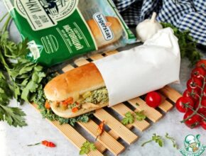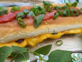 Предлагаю вариант хот-дога с курицей и сыром. Куриное филе измельчается в фарш, обжаривается с помидорами черри и пряностями на сковороде. Изюминкой блюда будет укропно-чесночное масло, которым мы смажем наши хот-доги. …